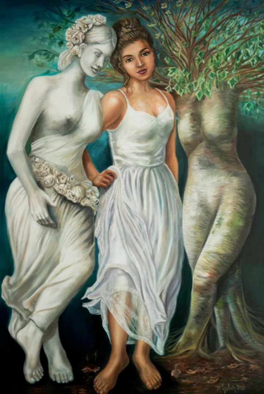 Con más de cuatro décadas de trayectoria, María Teresa Galván Rivas ha construido un lenguaje plástico propio en el que la mujer es protagonista y la música, su atmósfera vital. Formada en la Academia de San Carlos y nutrida por la luz y los paisajes de su natal Durango, su obra conmueve por su profundidad simbólica y su capacidad de revelar aquello que no siempre se dice, pero se siente.