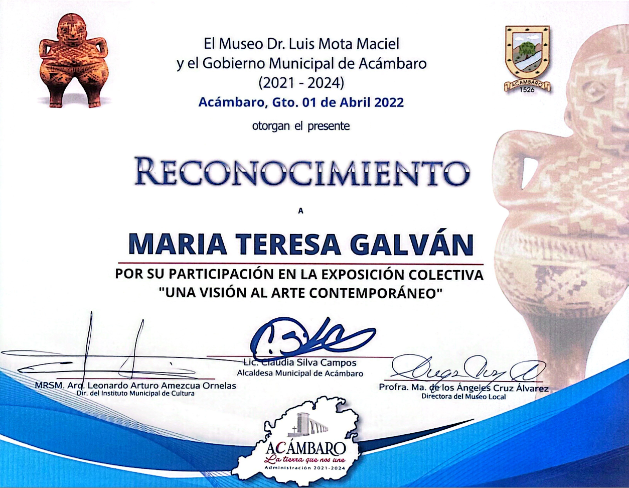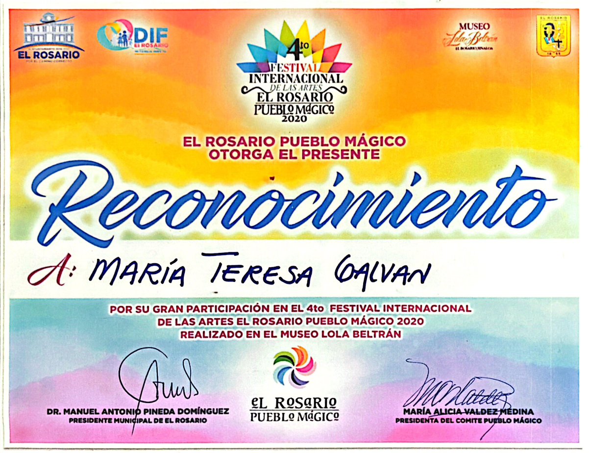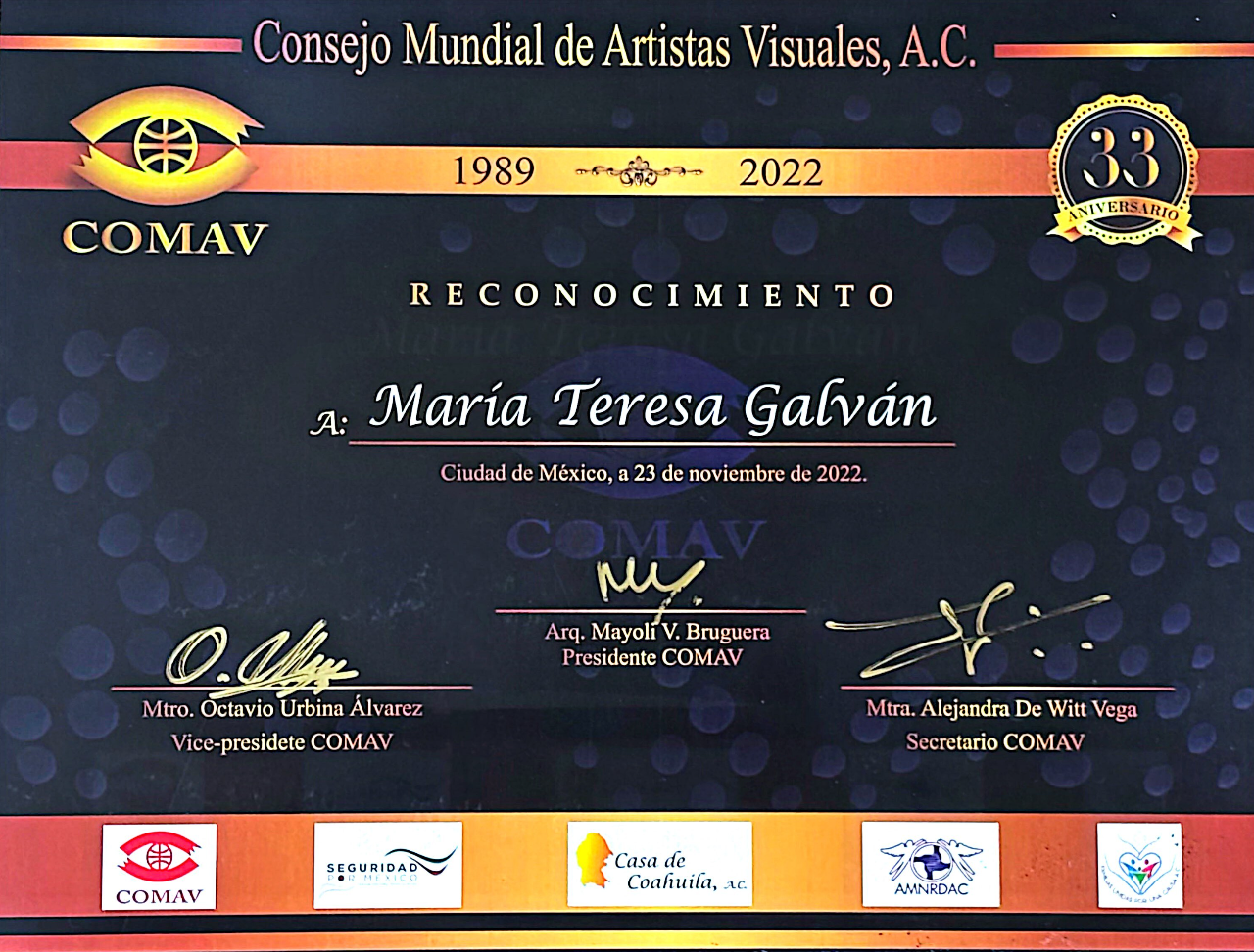 Ma Teresa Galván Rivas nació en el estado de Durango, un territorio donde la luz, el paisaje y el silencio dialogan de manera natural. Desde la infancia, ese entorno sembró en ella una sensibilidad particular hacia el color, las formas y los múltiples matices de la naturaleza, experiencia que más tarde se convertiría en la raíz emocional de su obra. Su formación profesional en la Academia de San Carlos, en la Ciudad de México, le permitió dar estructura y rigor técnico a una imaginación fértil y profundamente intuitiva. Ahí consolidó las herramientas necesarias para transformar emociones, recuerdos y estados del ser en imágenes cargadas de simbolismo, donde la pintura se convierte en un acto de introspección y de revelación.