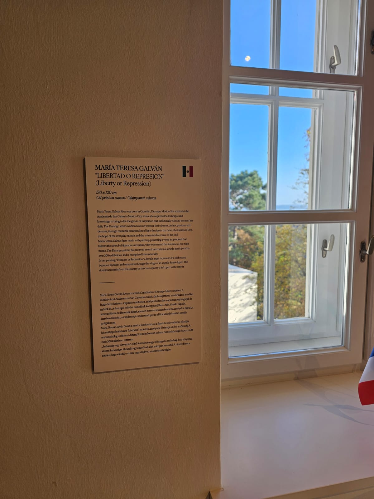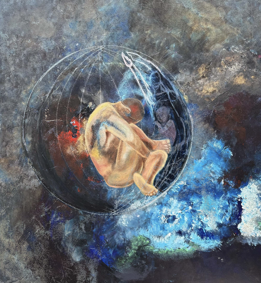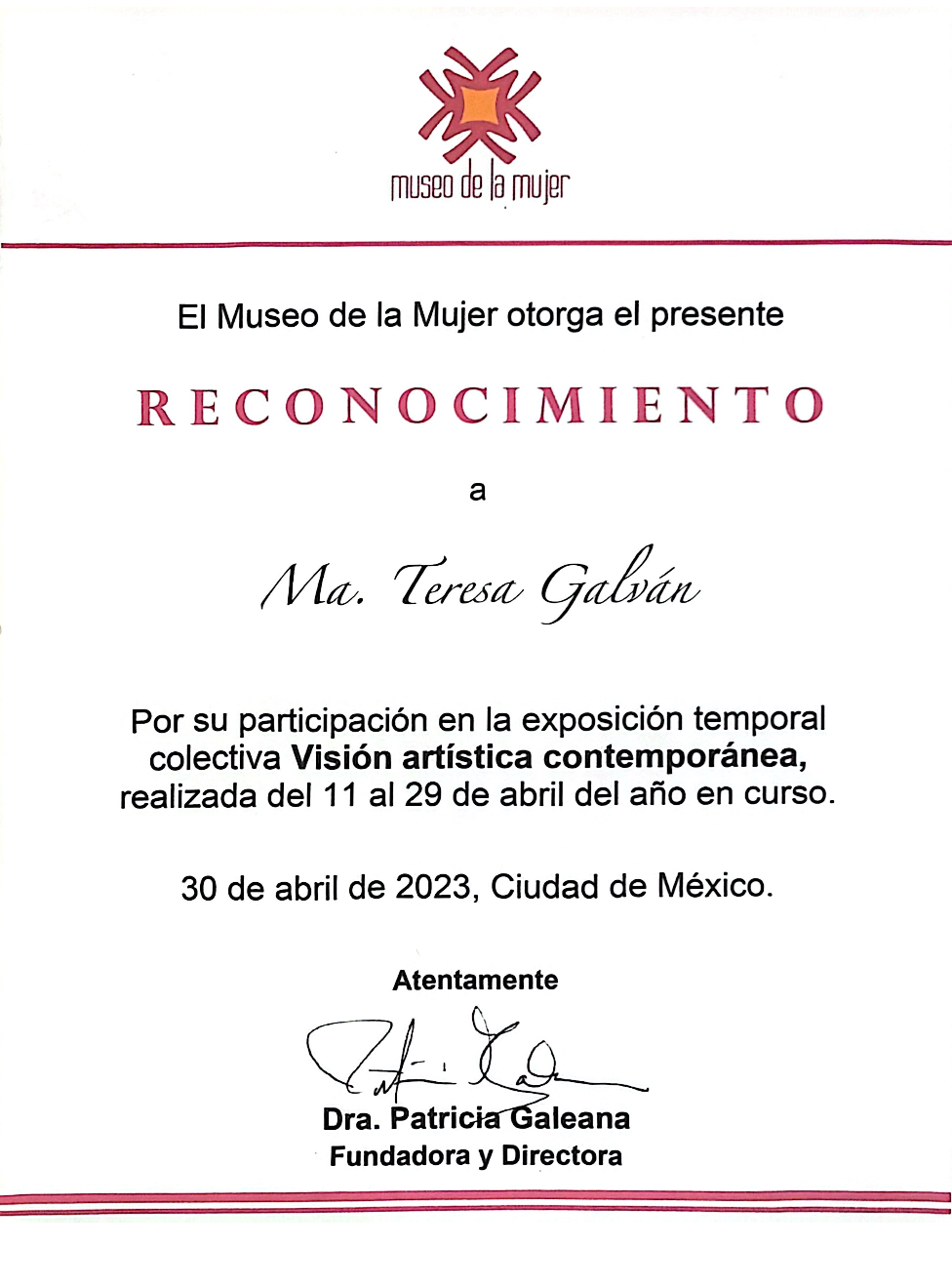 Ma Teresa Galván Rivas nació en el estado de Durango, un territorio donde la luz, el paisaje y el silencio dialogan de manera natural. Desde la infancia, ese entorno sembró en ella una sensibilidad particular hacia el color, las formas y los múltiples matices de la naturaleza, experiencia que más tarde se convertiría en la raíz emocional de su obra. Su formación profesional en la Academia de San Carlos, en la Ciudad de México, le permitió dar estructura y rigor técnico a una imaginación fértil y profundamente intuitiva. Ahí consolidó las herramientas necesarias para transformar emociones, recuerdos y estados del ser en imágenes cargadas de simbolismo, donde la pintura se convierte en un acto de introspección y de revelación.