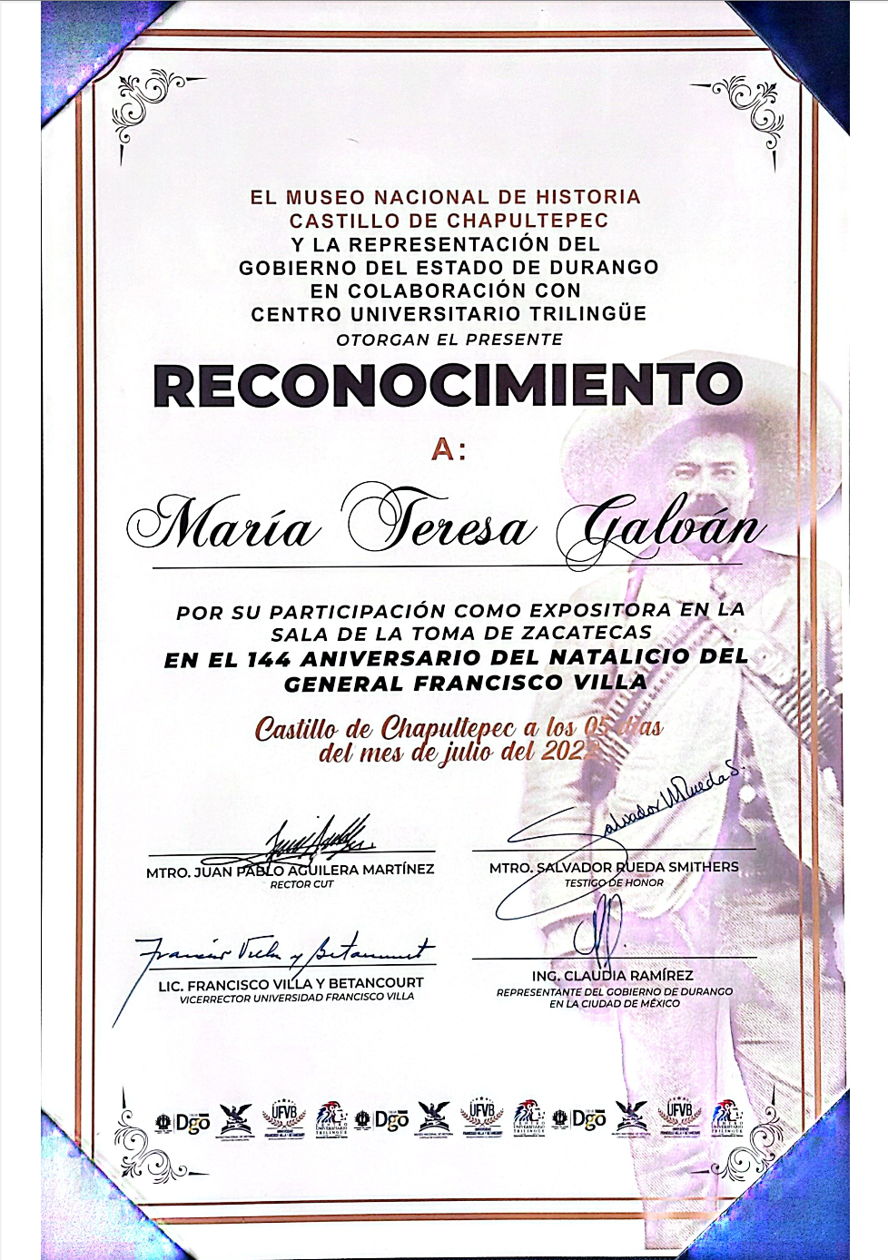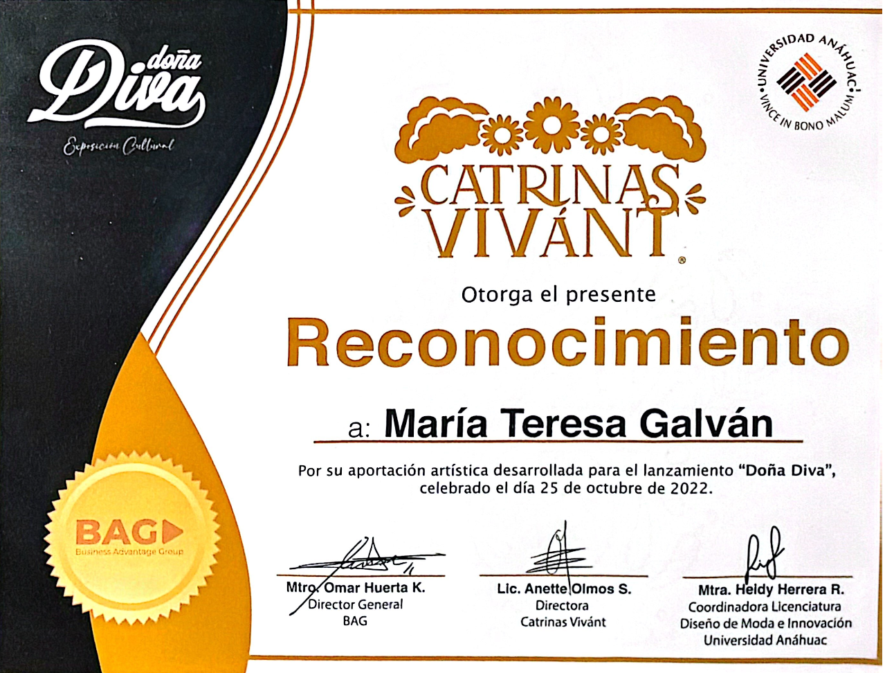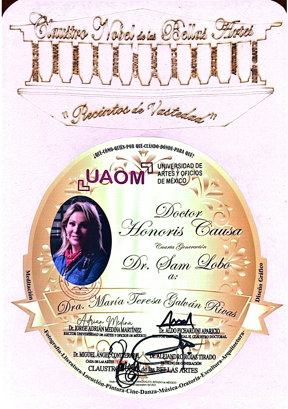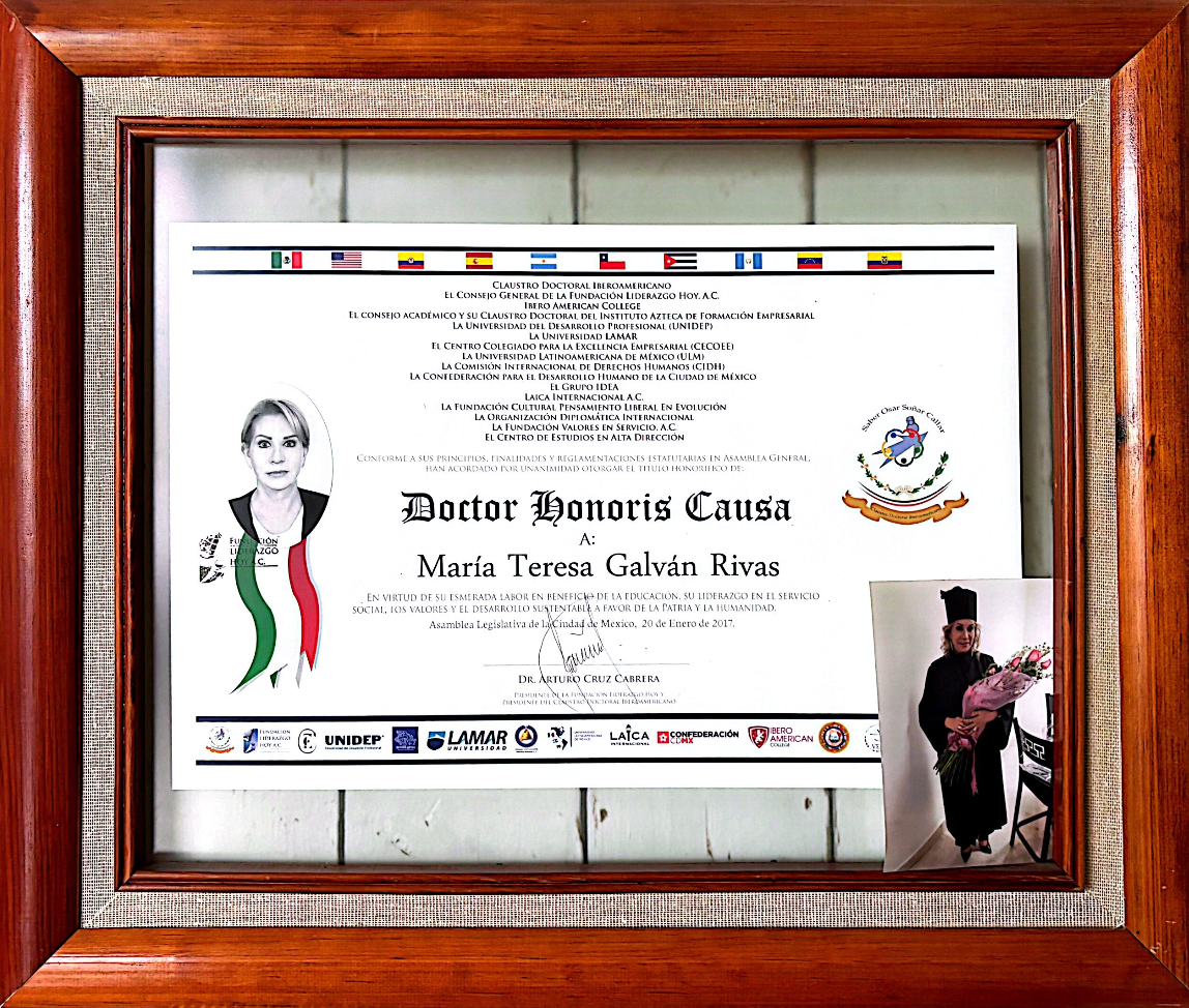 Entre las más destacables: "33 Sor Juanas y Mil Hombres Necios", "100 Años de la Muerte de Francisco Villa" en el Castillo de Chapultepec, Festival Internacional "Da Vinci", Doctorado Honoris Causa por el Claustro Doctoral Iberoamericano, Galardón Internacional "Ray Tico", Galardón Internacional "Mexico en tus Manos", Galardón Internacional "Mujeres de Excelencia", Galardón Internacional "Gaviota de Oro".