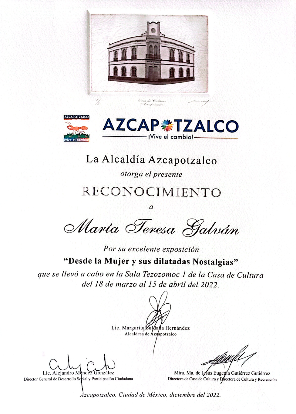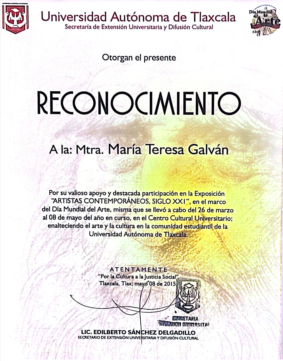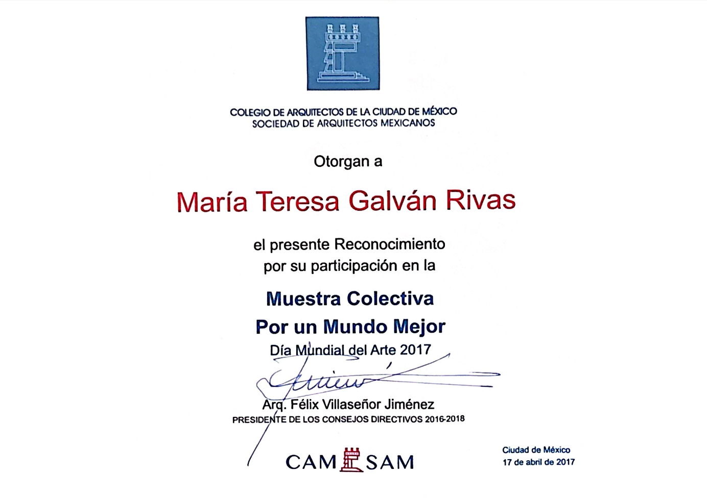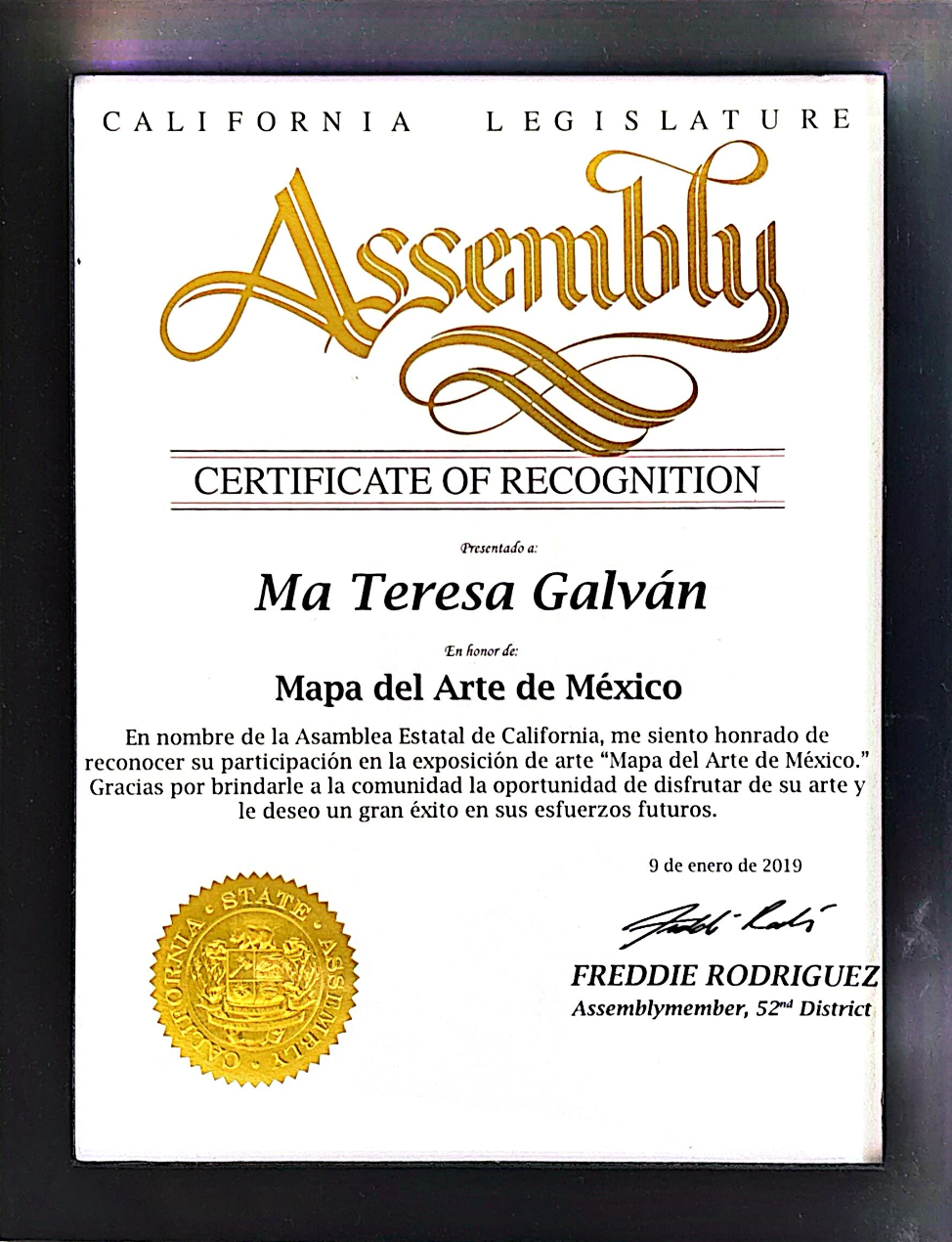 • Reconocimiento por parte de California Legislature Assembly, Mapa del Arte de México.