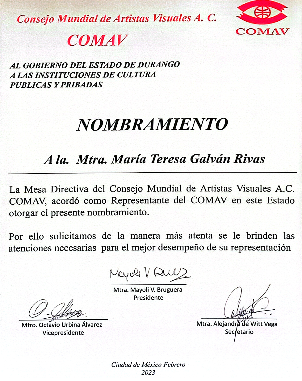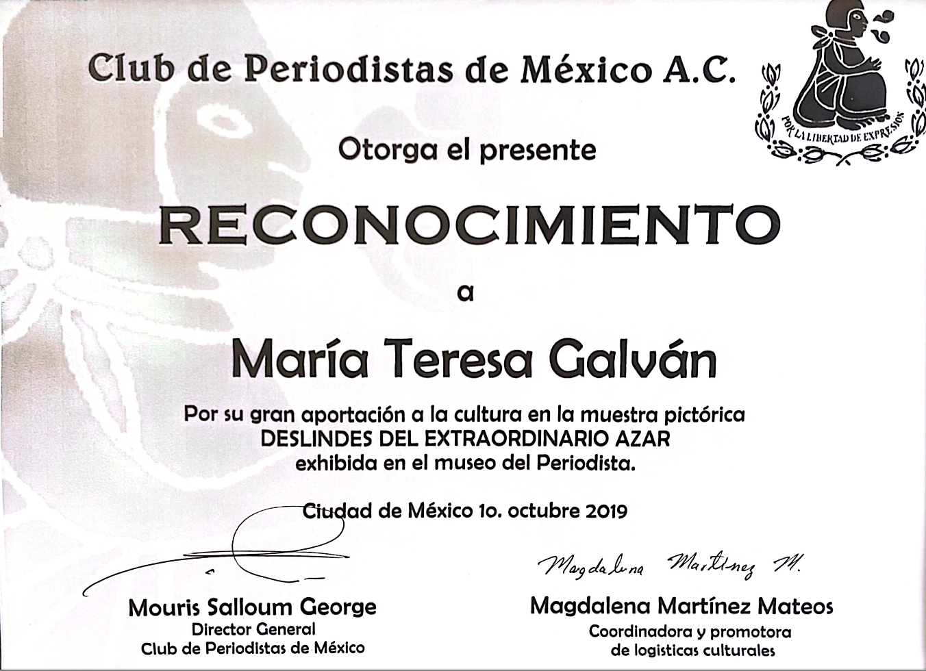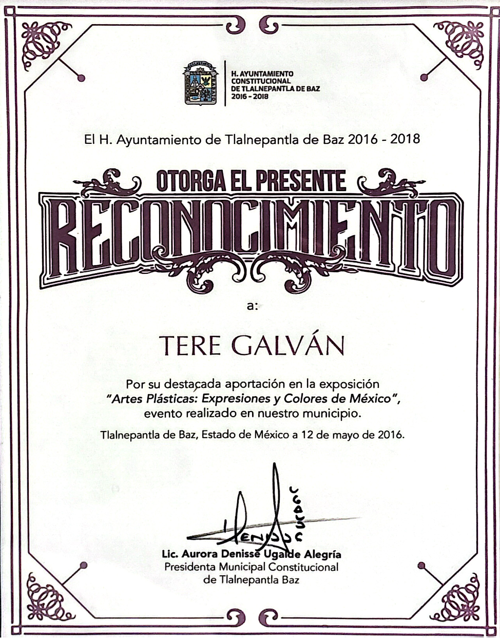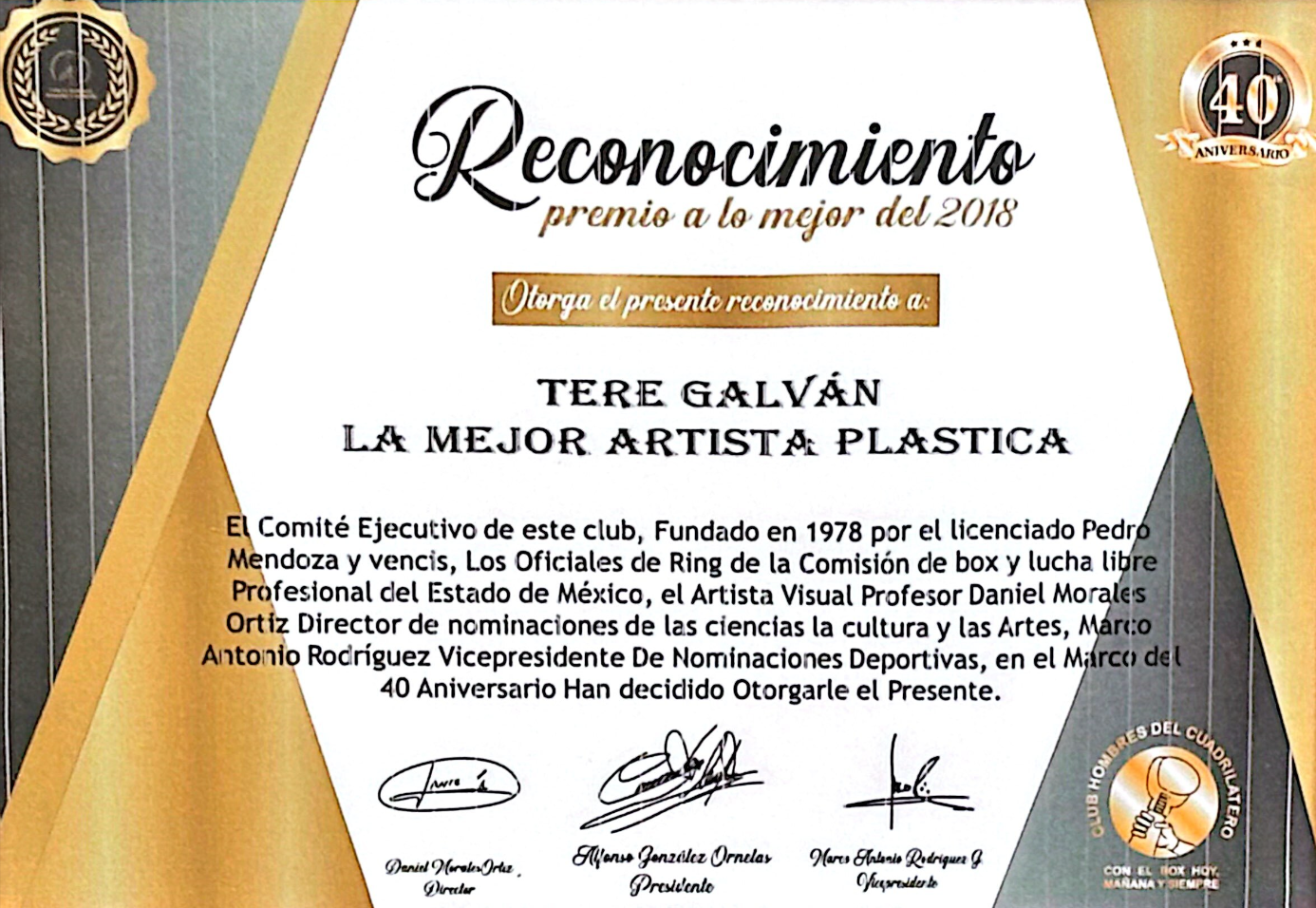 • Reconocimiento por parte de California Legislature Assembly, Mapa del Arte de México.
